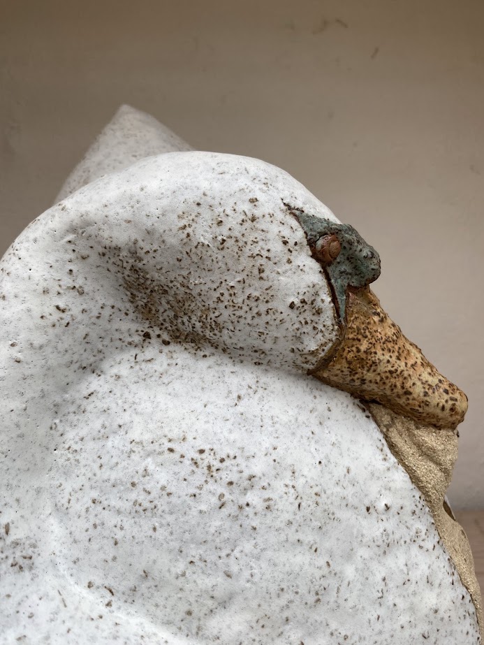 Hvad er interessant eller reglevant om min baggrund som kunstner? Jeg er vokset op i et hjem fyldt med kunst fra hele verden, min far var kunsthandler og samler. Masser af masker og skulpturer, men kun et maleri. Som niårig kom jeg på billedhuggeren Harald Isensteins børnehold. Her lavede jeg bl.a en skulptur, der senere blev støbt i bronze på kunstakademiet – To elefanter går til floden for at overbruse hinanden, men en tredje trænger sig sig imellem – ”Den evige trekant” Historiefortællingen i leret har fulgt mig siden. Jeg kan ikke prale af at have deltaget i en masse kurser, men lad mig sige det sådan – jeg har øvet mig rigtig meget og altid med forudsætningen hele tiden at øge sværhedsgraden, så jeg kunne blive bedre både teknisk og kunstnerisk. Og så har jeg været heldig, af og til, at kunne samarbejde med andre, der kan noget helt andet med leret. Man siger at man skal øve sig mindst 10.000 timer på en ting inden man bliver god til noget – hmm - det har jeg da i hvert fald brugt. Det meste af tiden har jeg arbejdet alene, men de sidste seks år har jeg dannet bo- og værksteds fællesskab med min søster Gerd her i Hundested. Det giver mulighed for sparring og inspiration. Her fortsætter jeg så rækken af finurlige skulpturer om politik, miljø, mageløse manipulationer, clima`x, indespærring og udelukkelser og hvad der ellers bliver ventil for det der optager mig. Og – glemte jeg lige at nævne at jeg er uddannet Designer fra Skolen for Brugskunst i København