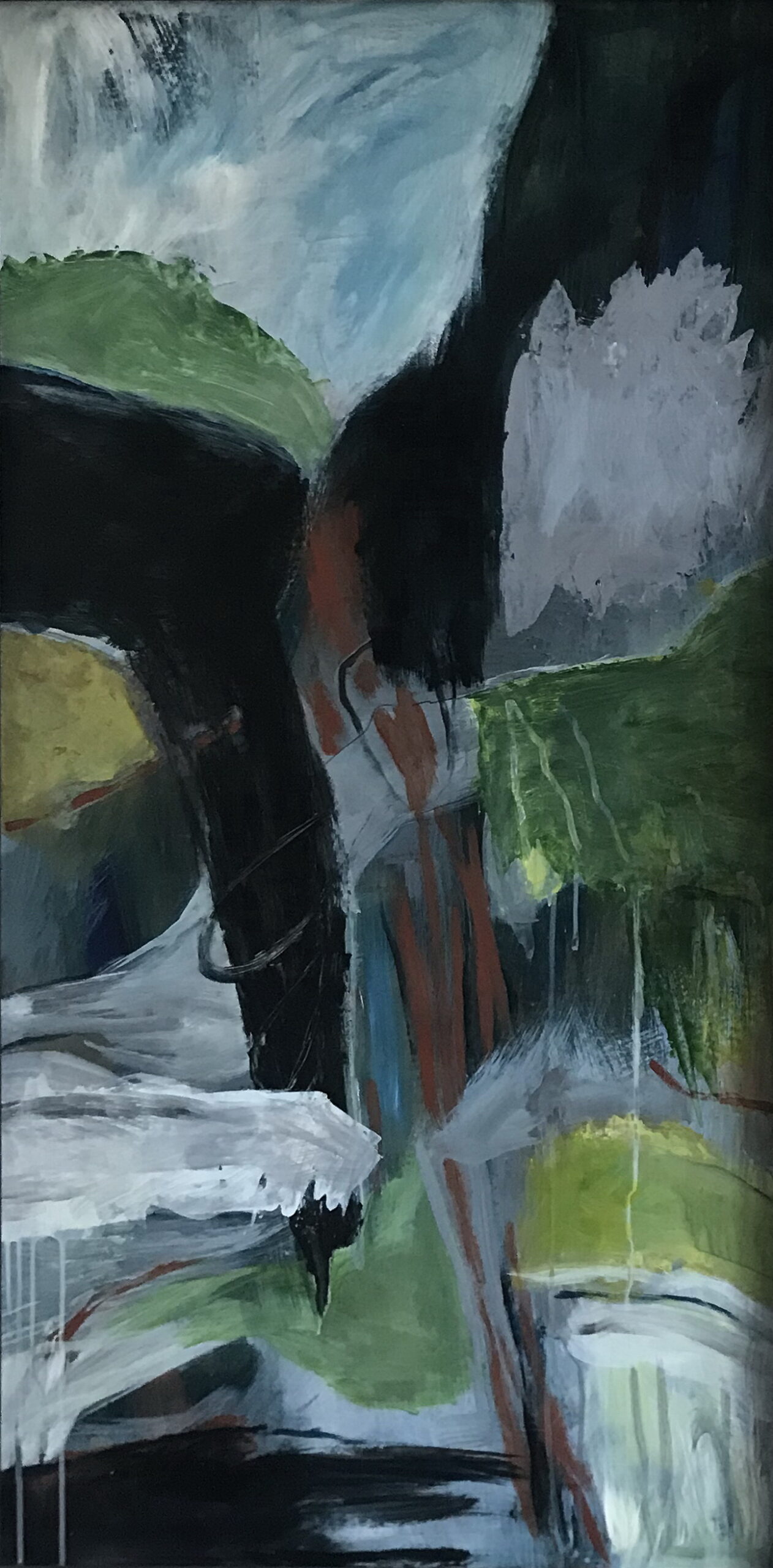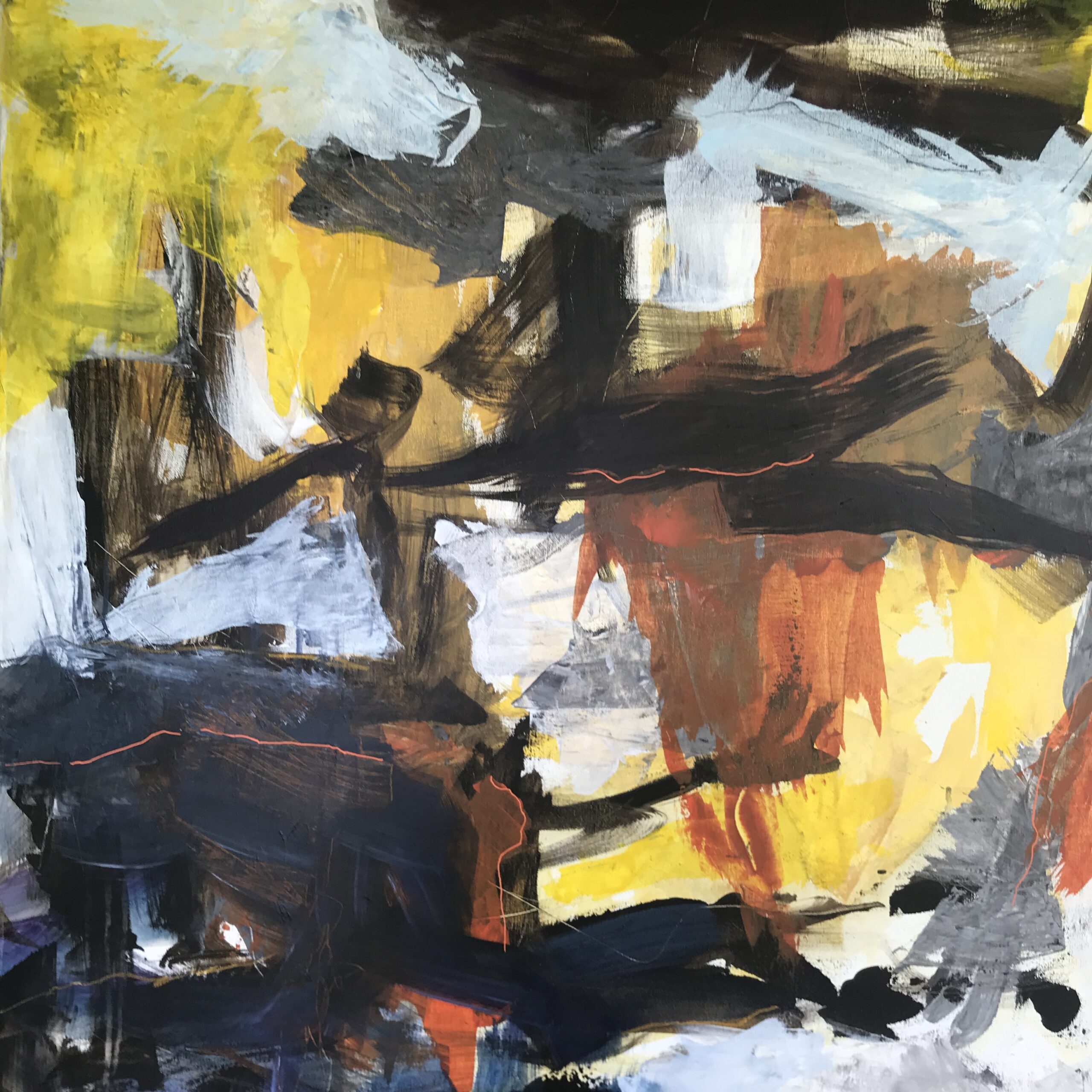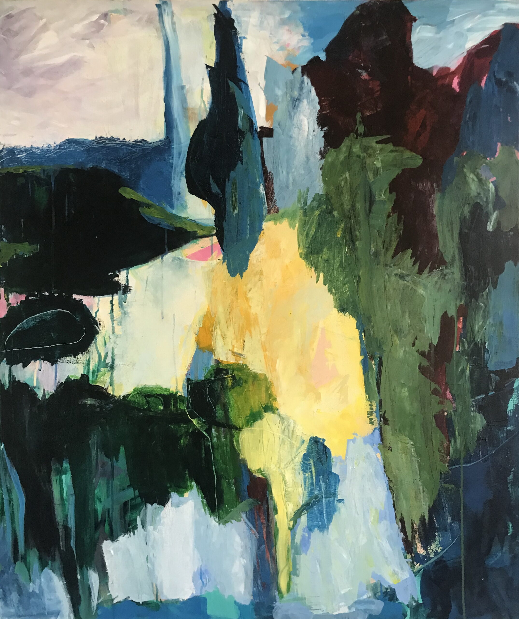Jeg maler abstrakte landskaber, udført ekspressivt og intuitivt med en bred palet af farver.